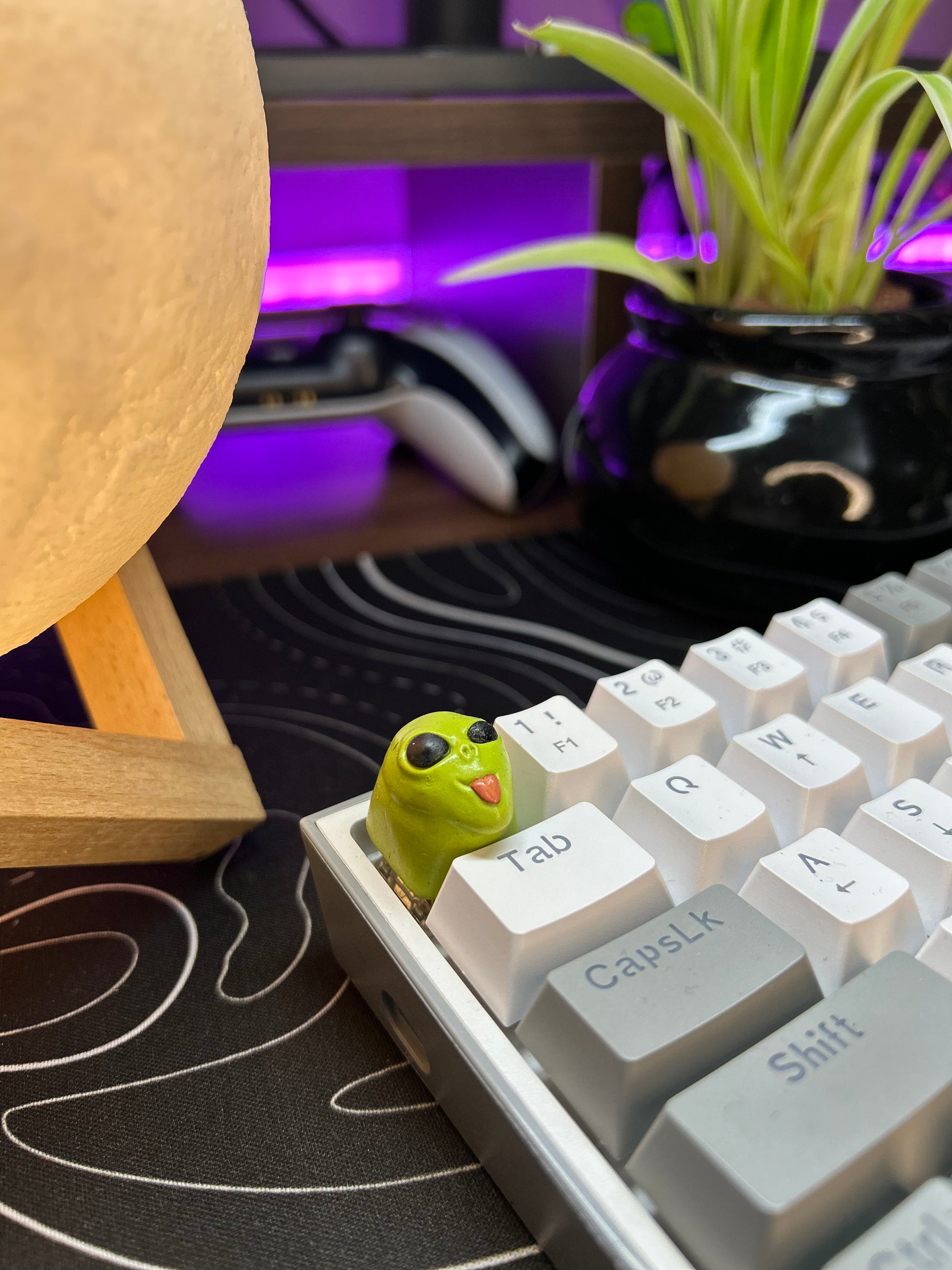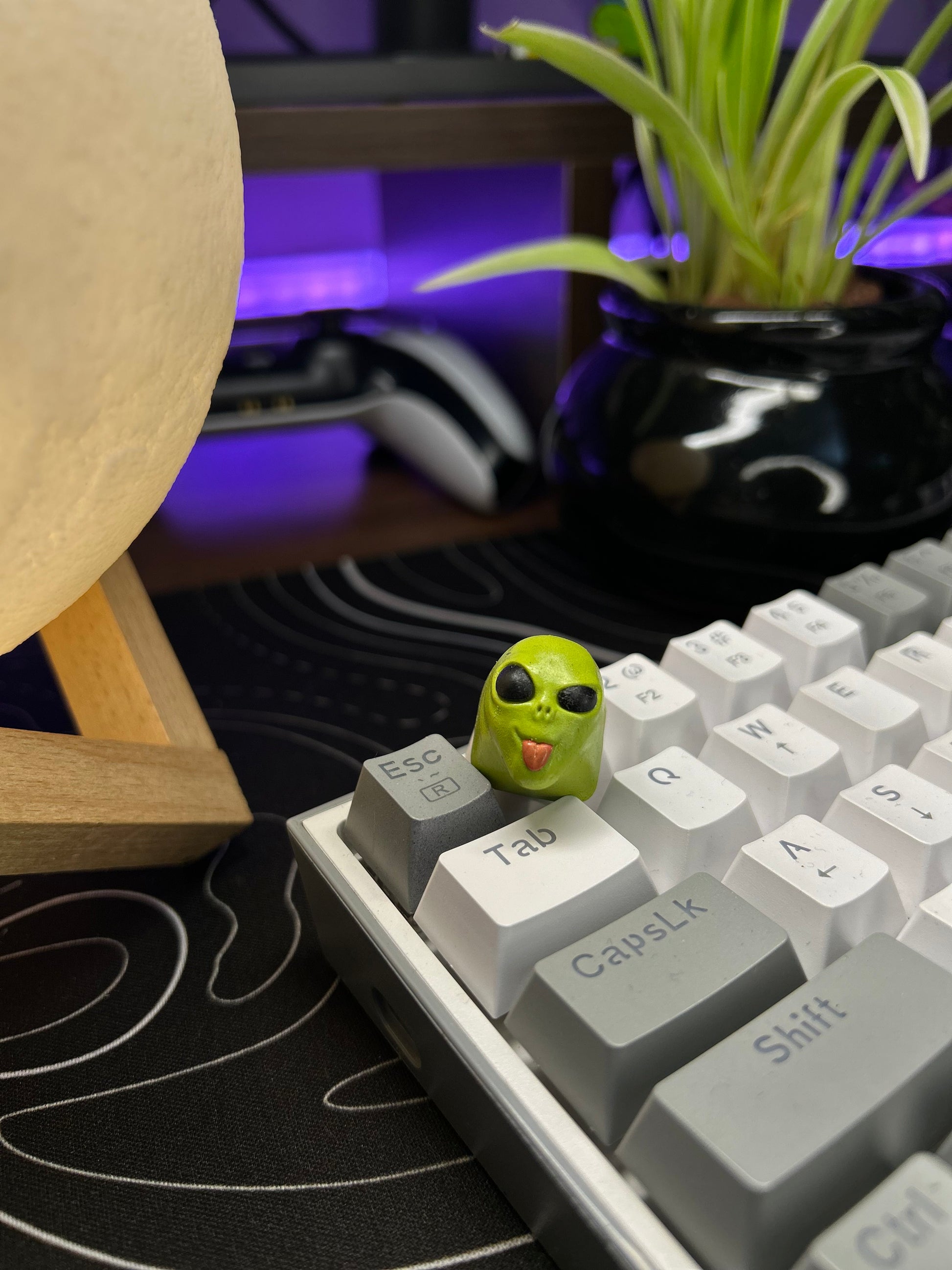 He came from a galaxy far, far away… probably because he got banned from his own. With glowing eyes, questionable intentions, and a suspicious obsession with Earth keyboards, this alien isn’t here just to invade, he’s here to vibe, confuse, and maybe abduct your boring keycaps. Out of this world and onto your keyboard, the Alien Invasion keycap is here to conquer clicks.